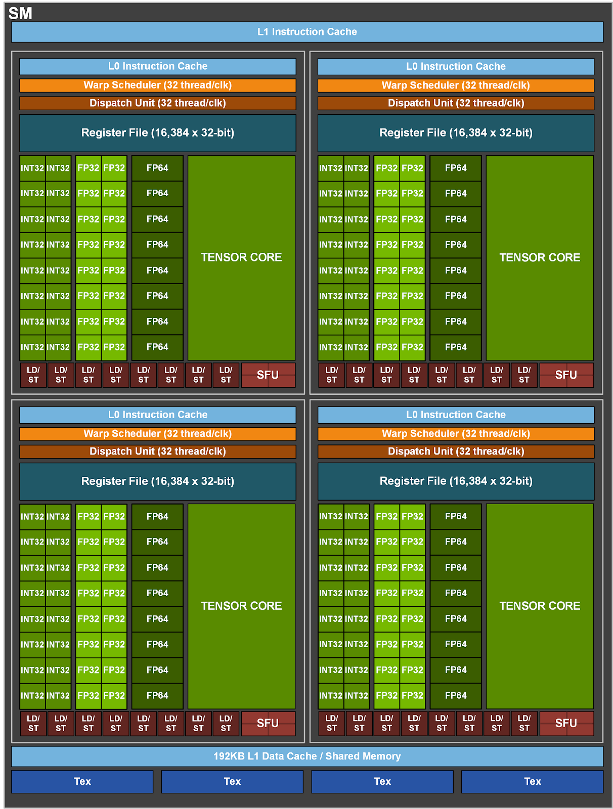 Even though this is a diagram of Turing, the numbers are accurate for the Ampere HPC, at least for the compute pipeline and warp scheduler.